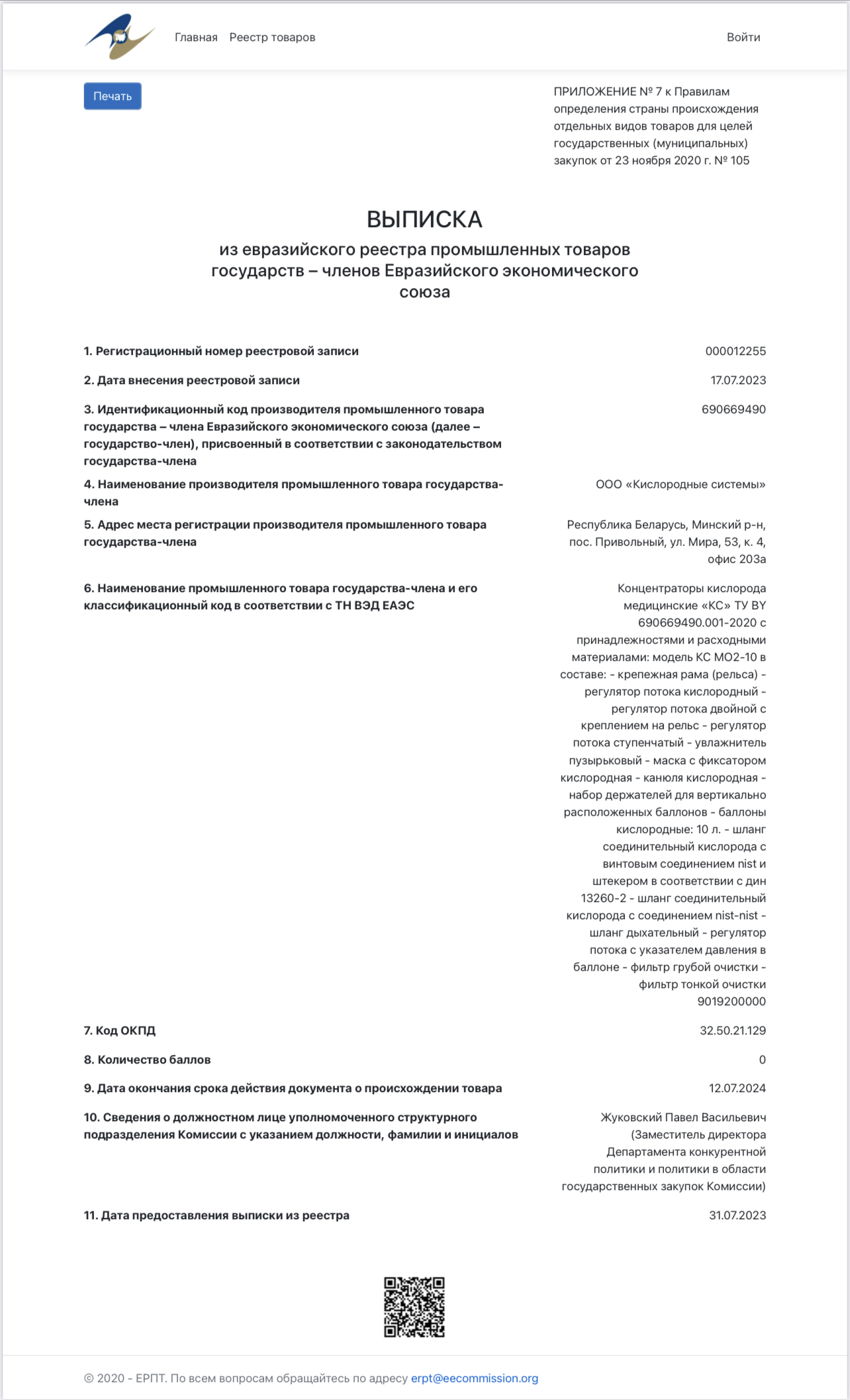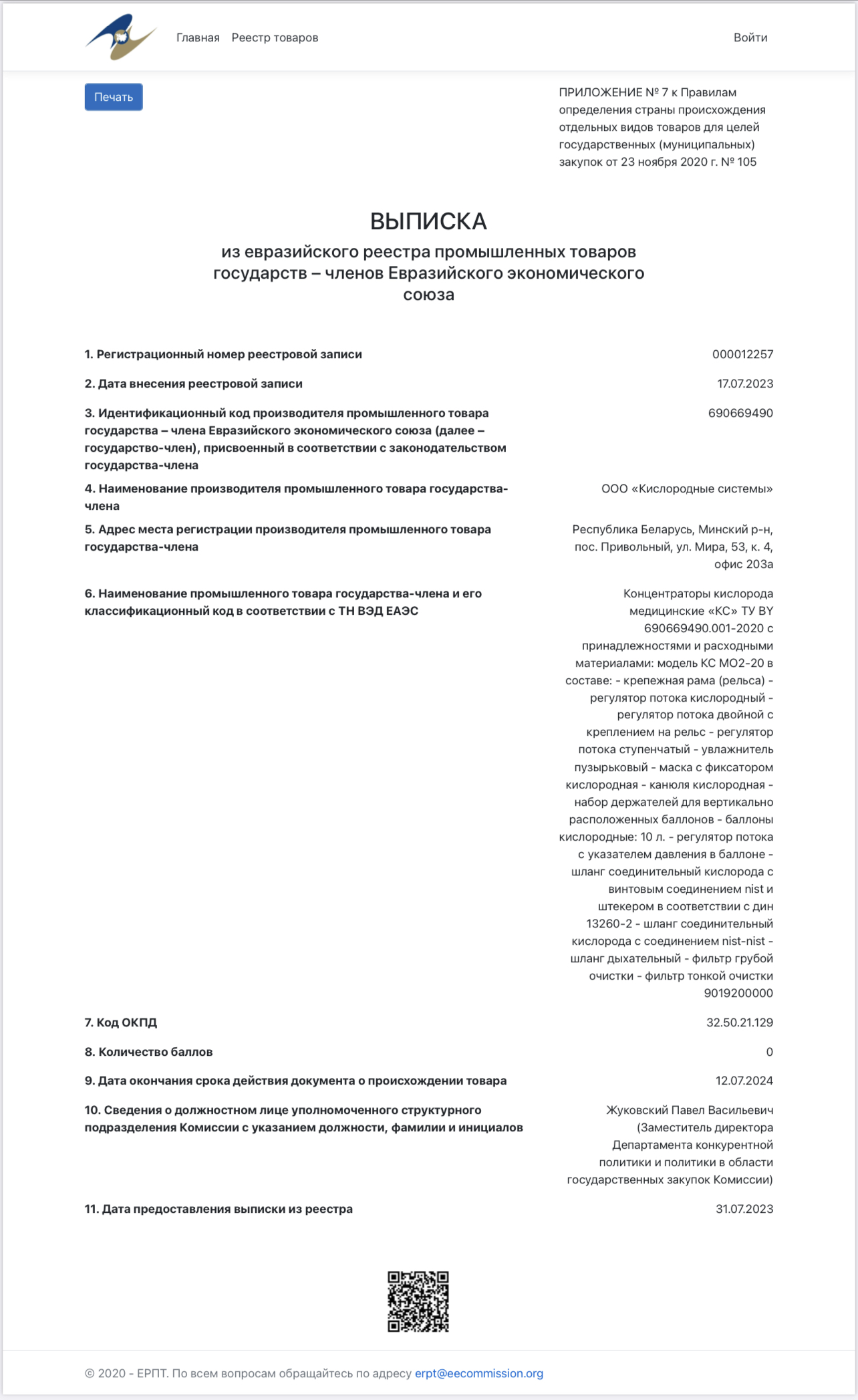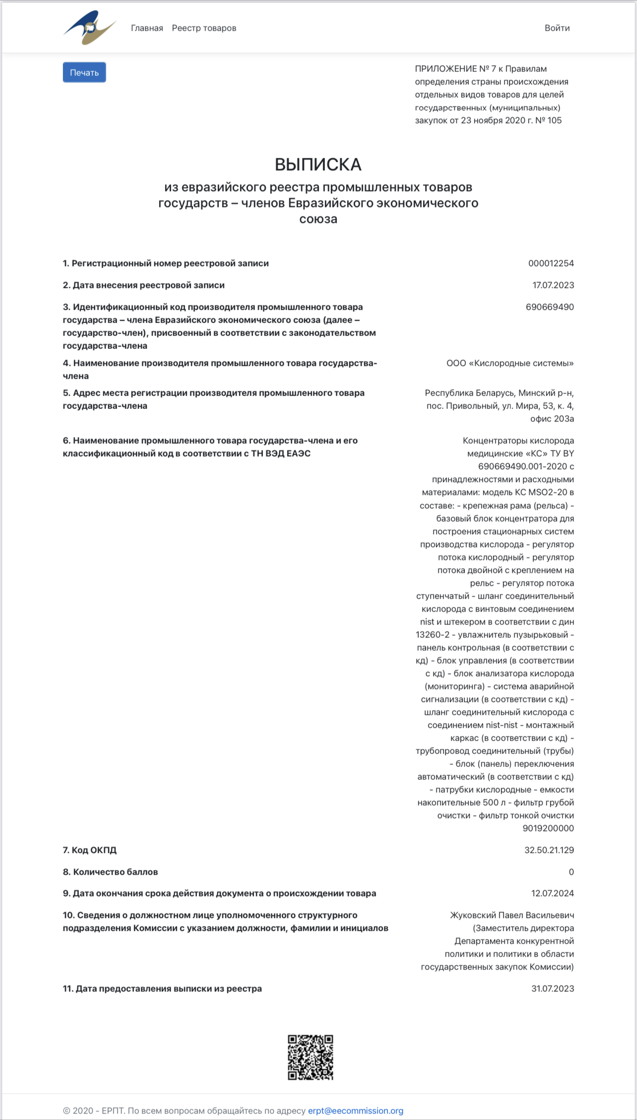 Концентраторы кислорода получили подтверждение СТ-1 в виде включения в реестр промышленных товаров ЕАЭС Рады Вам сообщить, что концентраторы кислорода фирмы ООО «Кислородные системы» получили подтверждение СТ-1 в виде включения в реестр промышленных товаров ЕАЭС!