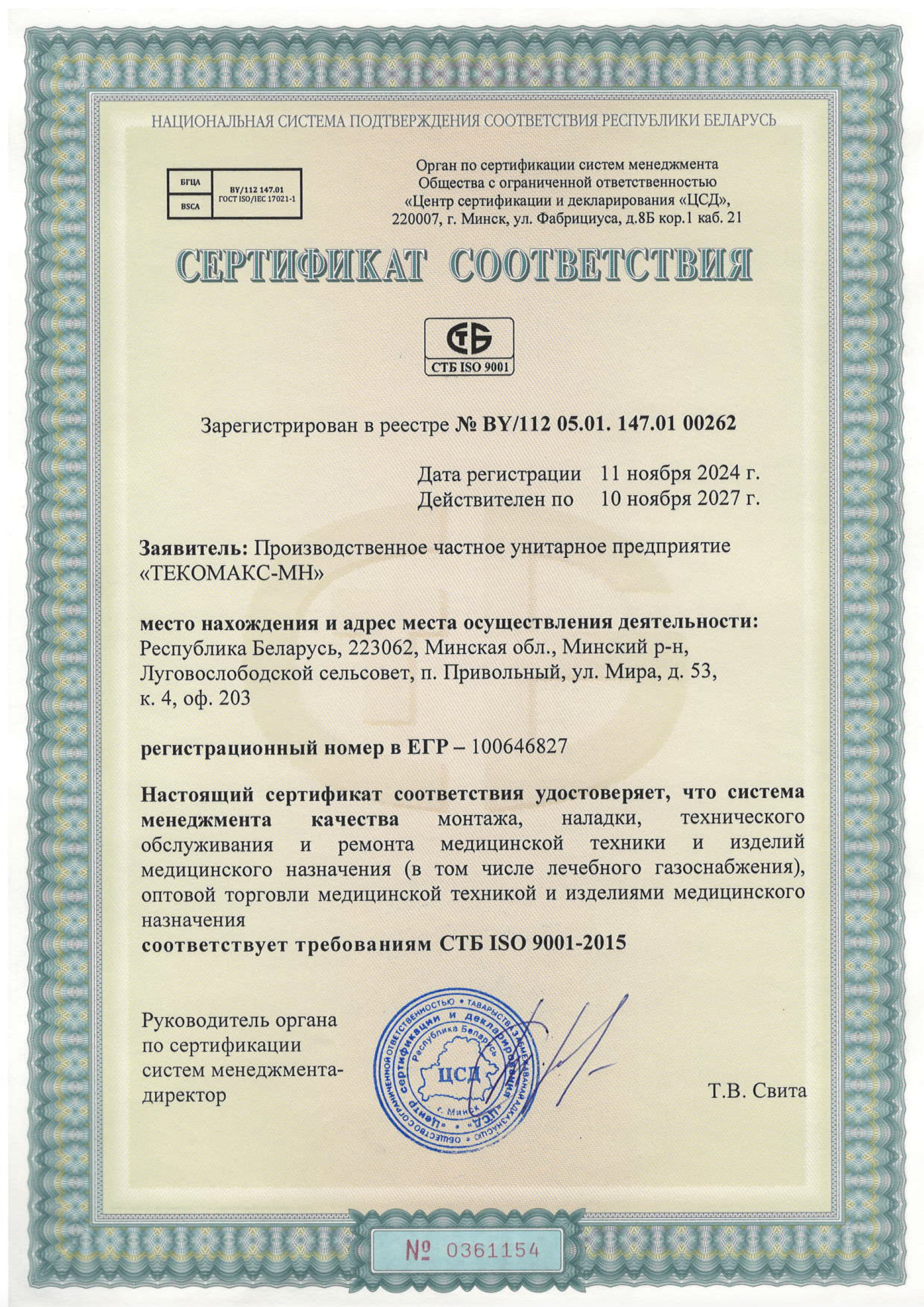 Продление системы менеджмента качества СТБ ISO 9001 Рады сообщить об успешном продлении системы менеджмента качества СТБ ISO 9001 для поддержания качества оказания услуг.