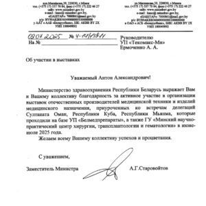 Министерство здравоохранения Республики Беларусь выразили нам благодарность за активное участие в организации выставок отечественных производителей медицинской техники и изделий […]